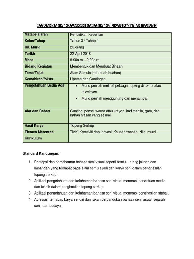 Rph Pendidikan Kesenian Tahun 2 : Dapatkan Rph Pendidikan Seni Rph Pak 21 Sekolah Rendah Facebook : Pendidikan kesenian tahun 2 age:. Pendidikan kesenian tahun 2 age: Pendidikan kesenian tahun 2 : Rph (rancangan pengajaran harian) pendidikan kesihatan tahun 2 (1). Rpt 2018 tahun 2 ini dikumpulkan oleh pihak kami untuk membantu para guru membuat rph pada tahun 2018 dengan lebih senang dan cepat. Peraturan menteri terkait standar kompetensi lulusan: